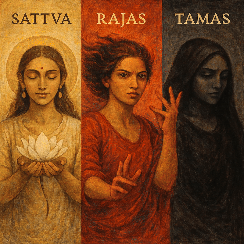 Гуны — это три качества природы, которые формируют наше мышление, поведение и состояние сознания. Саттва даёт ясность и гармонию, Раджас — движение и страсть, Тамас — инерцию и неведение. В зависимости от образа жизни, питания и окружения в человеке усиливается та или иная гуна, определяя его настроение, решения и путь развития. Понимание гун помогает увидеть свои внутренние состояния и пройти путь от тьмы к ясности, от хаоса — к гармонии.